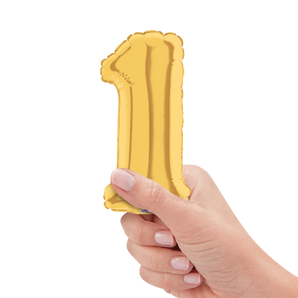 7 inch Betallic Number 1 - Gold Megaloon foil mylar number balloons are the ultimate way to celebrate someone's birthday, a couple’s anniversary, the anniversary of a business and for marketing a special priced product at a business! Inflate balloons with air and attach them to a string to make a celebratory banner or tape them to the wall. Tape and hanging devices not included. Inflate balloons with air-only. Balloon does not float and arrives uninflated.