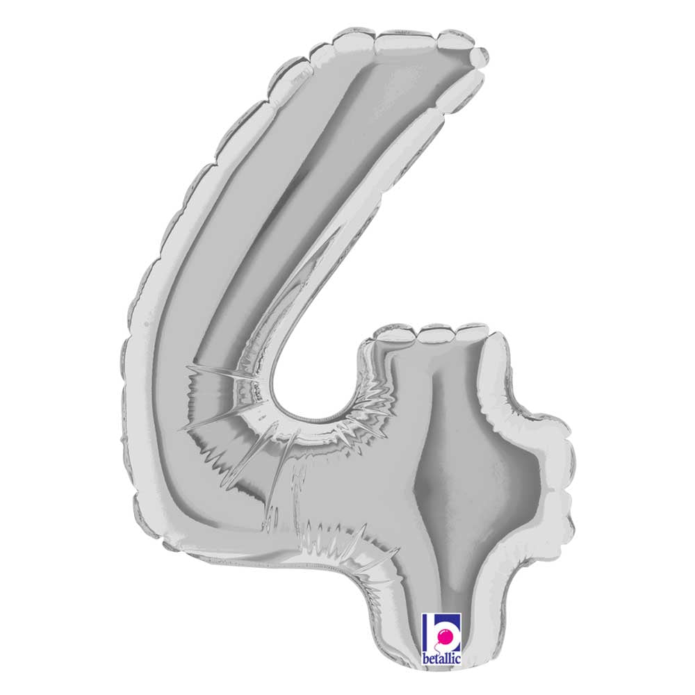 7 inch Betallic Number 4 - Silver Megaloon foil mylar number balloons are the ultimate way to celebrate someone's birthday, a couple’s anniversary, the anniversary of a business and for marketing a special priced product at a business! Inflate balloons with air and attach them to a string to make a celebratory banner or tape them to the wall. Tape and hanging devices not included. Inflate balloons with air-only. Balloon does not float and arrives uninflated.