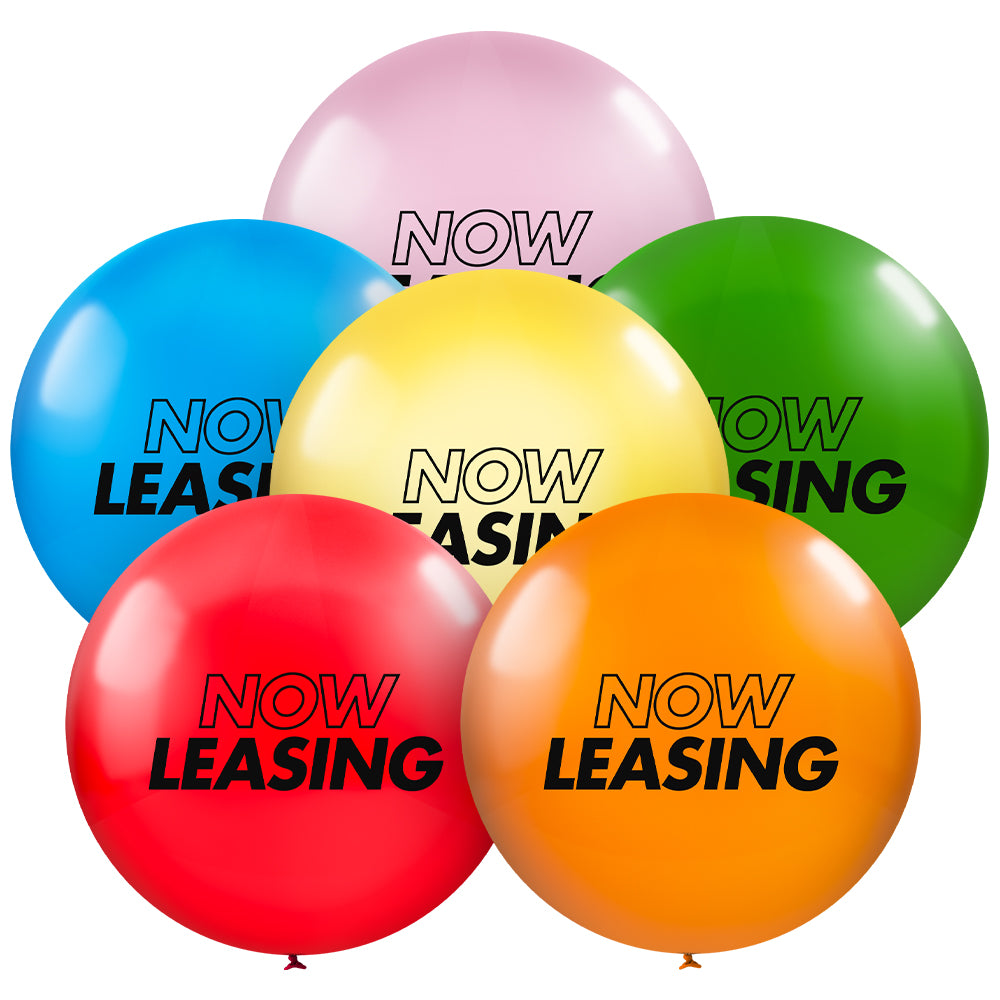These 17 inch round Solid Color TUFTEX Assortment - Now Leasing latex balloons from TUFTEX are perfect for making balloon arches, balloon columns, balloon clusters, and other balloon decorations. Color coordinate these latex balloons with themed foil mylar balloons for the ultimate balloon bouquet! Package includes 25 - 17 inch TUFTEX Assortment - Now Leasing latex balloons. The balloons can be inflated with helium to float. Balloon arrives uninflated.