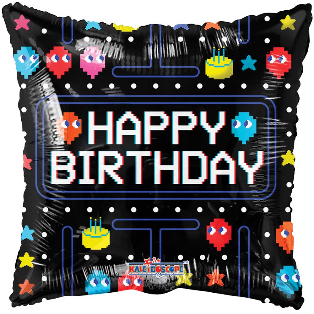 Product Barcode: 681070121606Celebrate that special someone's birthday with this fun 18 inch square Birthday Arcade Gellibean foil mylar balloon! Combine a couple of these 18 inch Kaleidoscope balloon designs with a few of our birthday latex balloons to create a bouquet cluster to give someone as a special gift or to use as birthday party decor. This balloon includes a self-sealing valve, preventing the gas from escaping after it's inflated. The balloon can be inflated with helium to float or with a balloon air inflator. Balloon arrives uninflated.