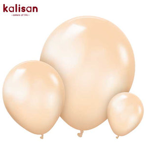 These 12 inch round Solid Color Kalisan Metallic Pearl Salmon latex balloons from Kalisan are perfect for making balloon arches, balloon columns, balloon clusters, and other balloon decorations. Color coordinate these latex balloons with themed foil mylar balloons for the ultimate balloon bouquet! Package includes 12 inch Kalisan Metallic Pearl Salmon latex balloons. The balloons can be inflated with helium to float. Balloon arrives uninflated.