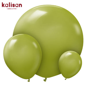 Product Barcode: 8693295361325These 5 inch round Solid Color Kalisan Retro Olive latex balloons from Kalisan are perfect for making mini balloon arches, mini balloon columns, can be stuffed into larger balloons or used as accents for centerpieces, balloon deliveries and balloon animals. Package includes 100 - 5 inch Kalisan Retro Olive latex balloons. Recommended to be inflated with a hand pump or balloon air inflator as they do not hold helium. Balloons do not float and arrive uninflated.